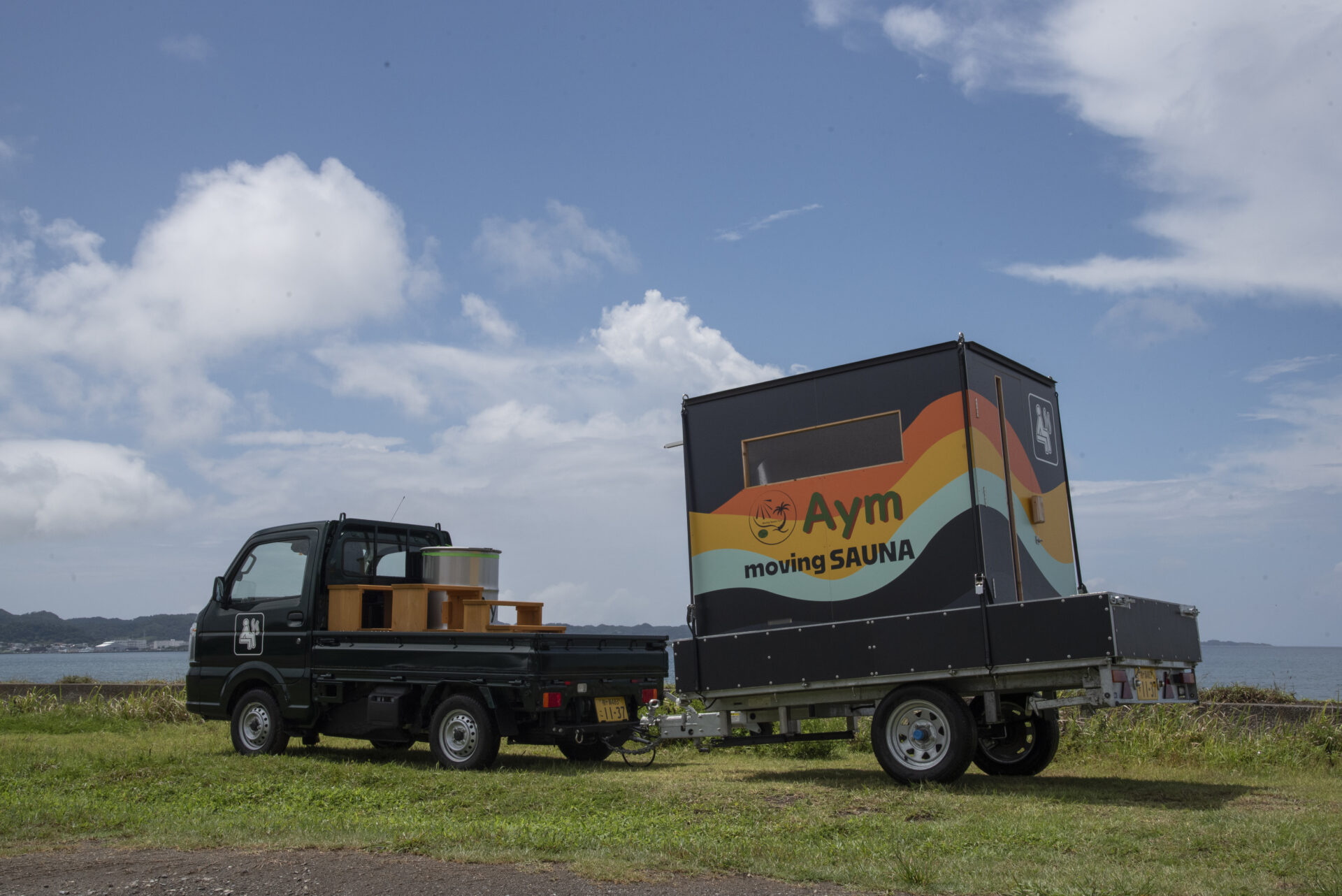 「ムービングサウナ エイム」は、県南唯一の移動式サウナボックスレンタル。普通免許で運転できる軽トラ(オートマ車)に、ストーン付薪ストーブが設置されたサウナボックス(牽引カーに搭載/牽引免許不要)、ドラム缶風呂(軽トラ荷台)を搭載し、お好きな場所であなただけの貸切サウナを楽しめます。 ご自宅、別荘、海、山、川、森、提携のキャンプ場ほか、軽トラで行ける場所ならどこででも、未知のサウナ体験をお楽しみください。
